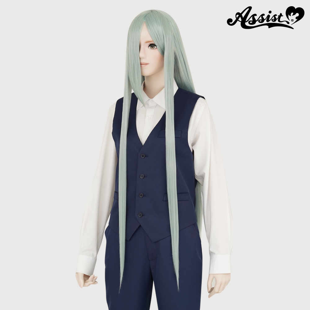 自然なスーパーロングスタイルをお求めの方にオススメです。前髪が長めで加工が得意な方に最適です。くすんだパステルグリーンです。