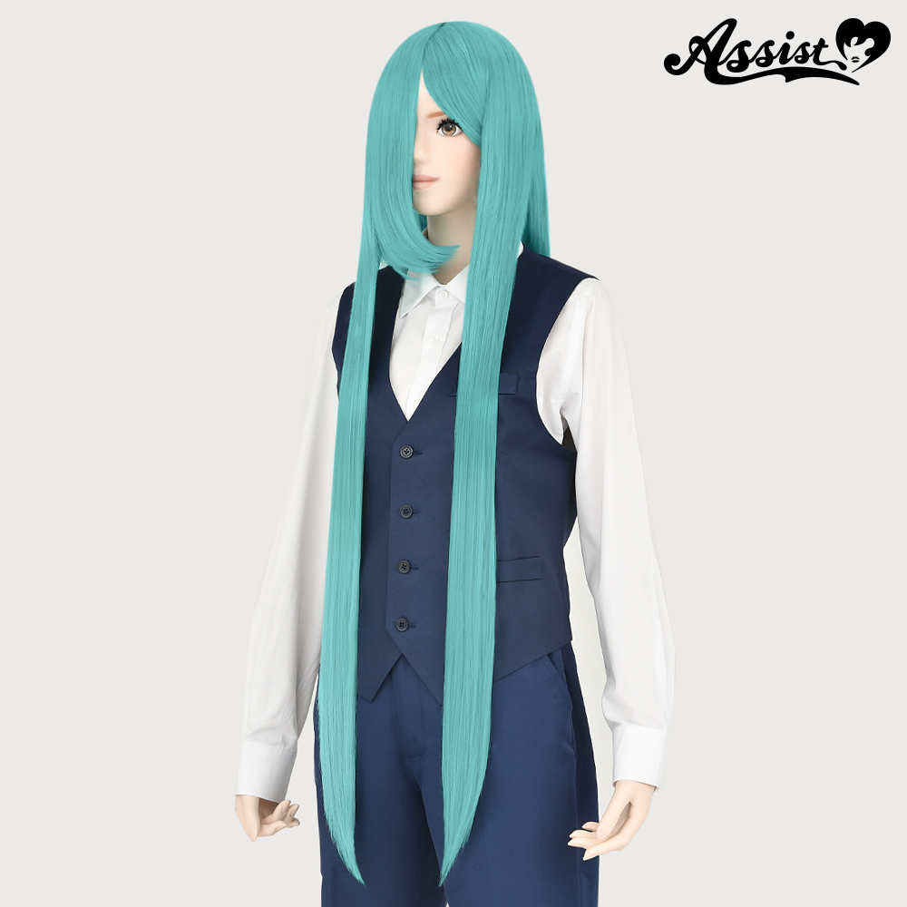 自然なスーパーロングスタイルをお求めの方にオススメです。前髪が長めで加工が得意な方に最適です。パステルグリーンに少し暗みがかったグリーンです。