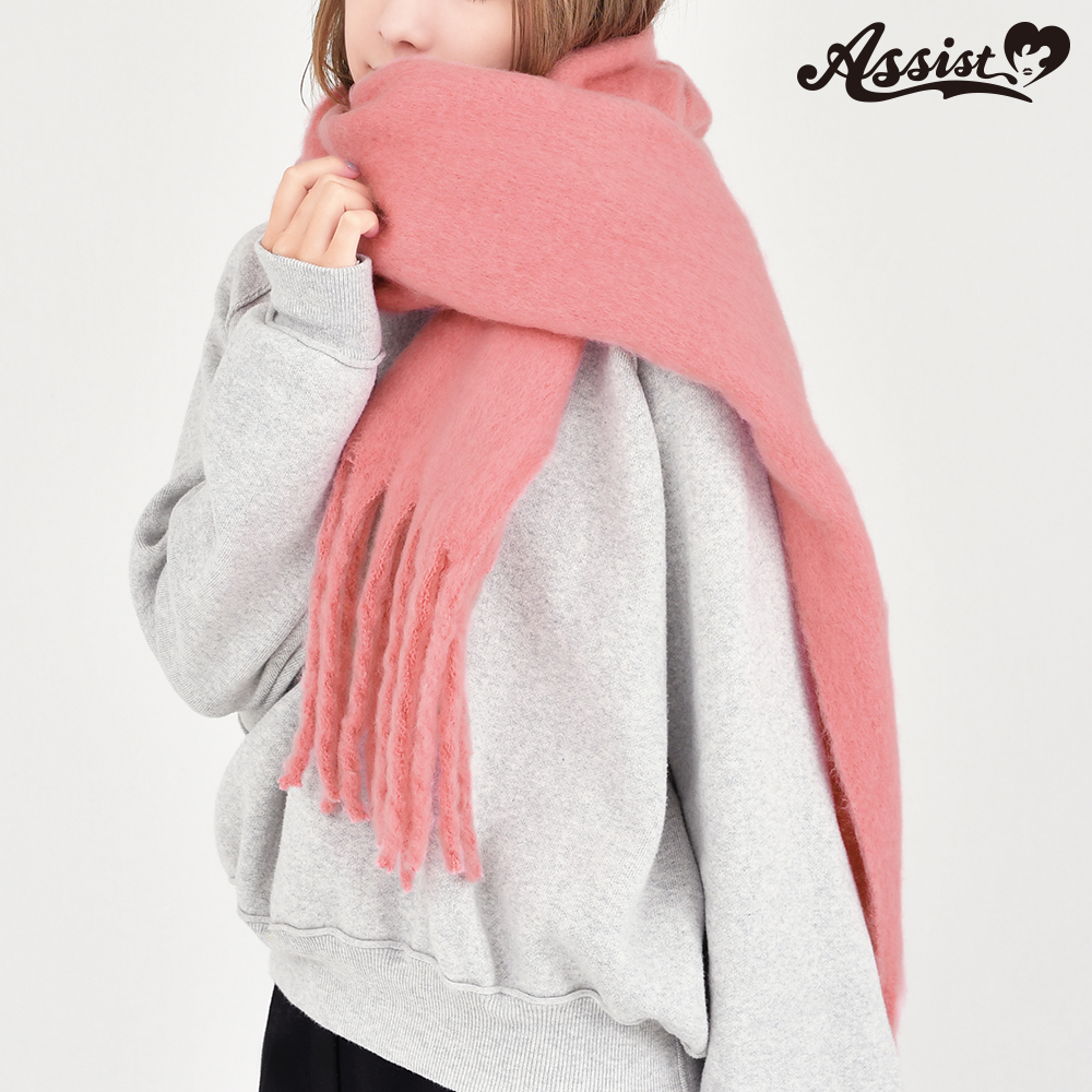 ※素材の特性上、マフラーの繊維が衣服に付着する場合がございます。その際は、洋服ブラシなどできれいにしてください。