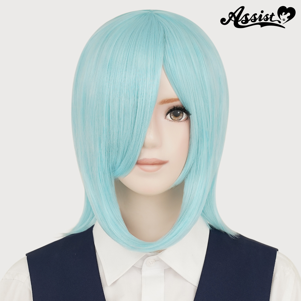 ふかしなしのスタイルをお求めの方にオススメです。 顔周りに長さがあるのでフェイスラインのカバーにも最適です。少しくすんだ明るいパステルアクアブルーです。