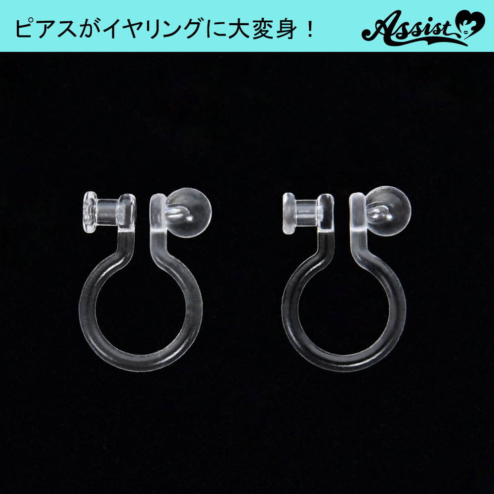 ピアスのシャフトをカットして差し込み、固定するとイヤリングとして使用できます。