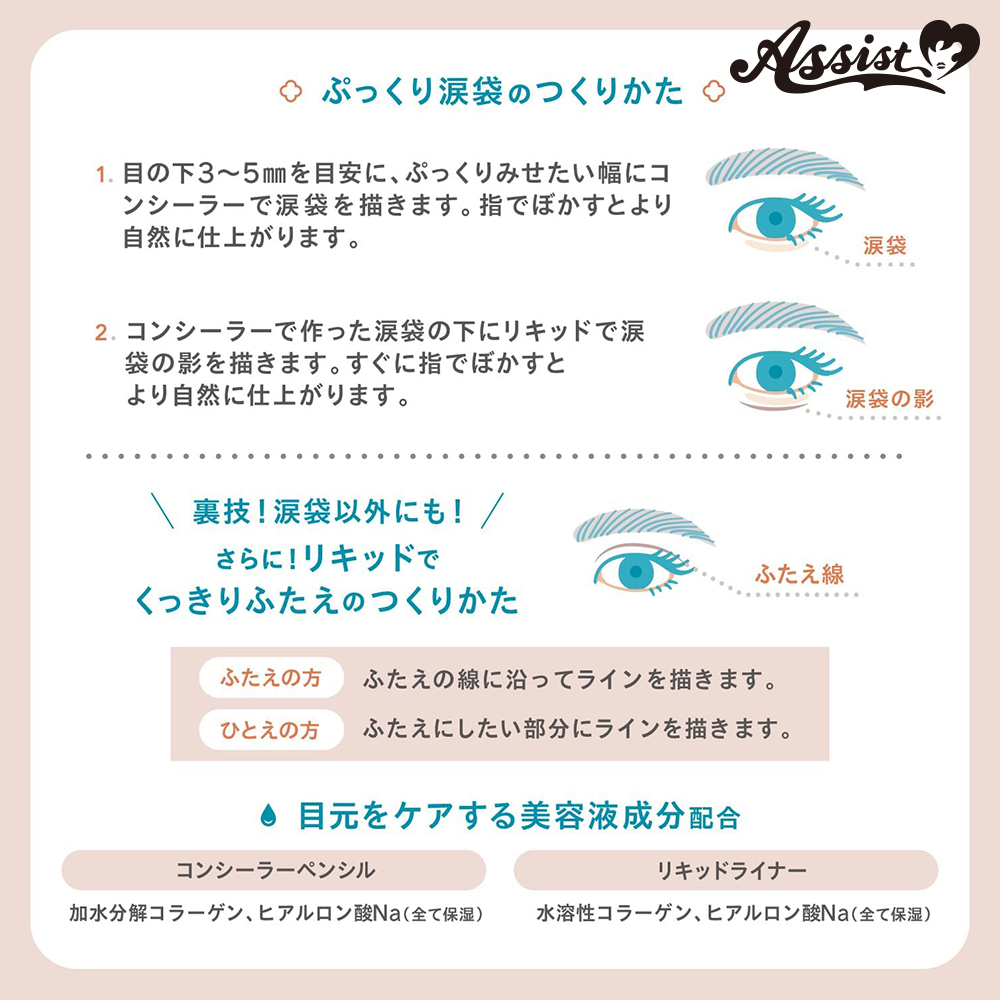 なめらかに描けるペンシルタイプで涙袋をぷくっと見せます。