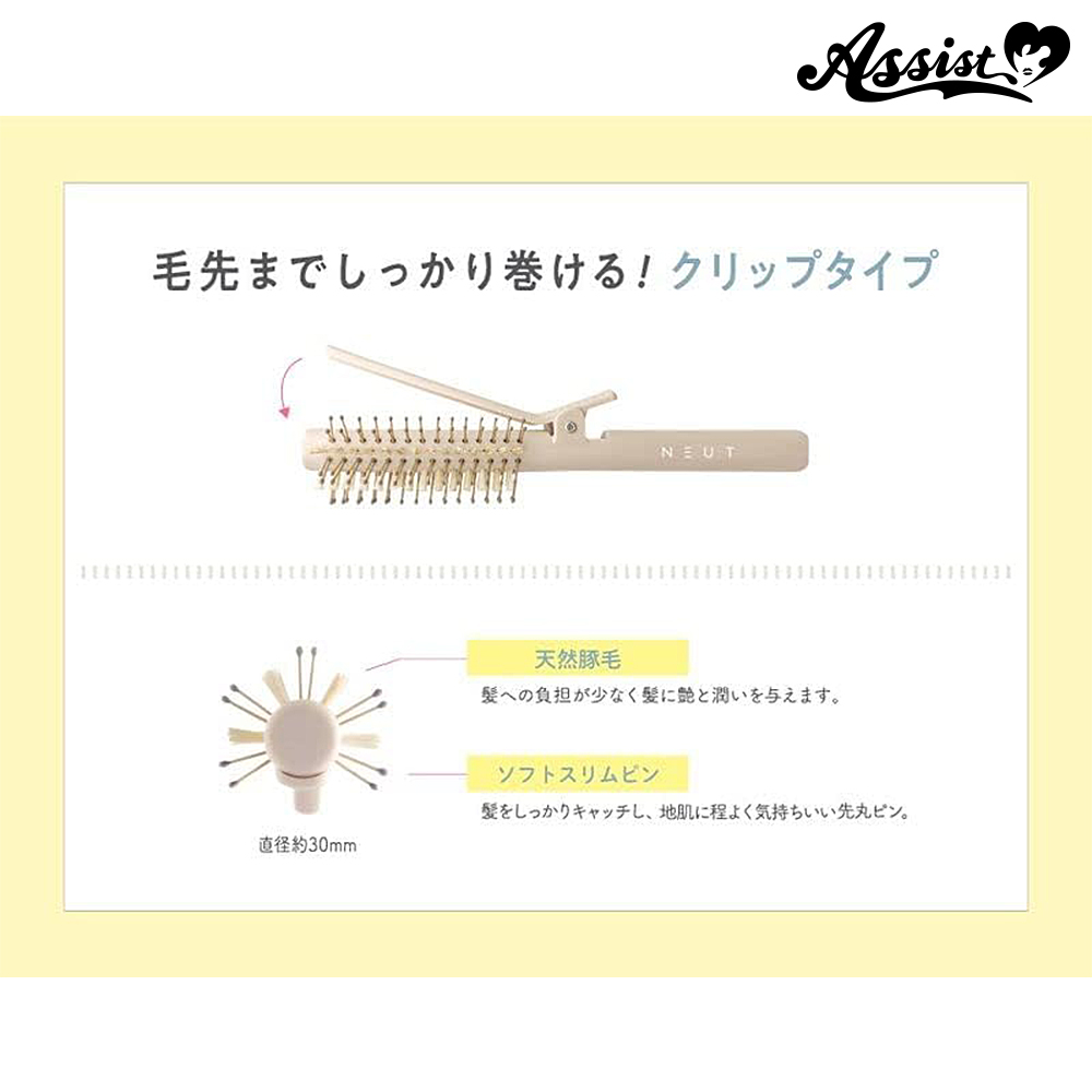 クリップ付きでヘアスタイリングが苦手な方も簡単に使えるロールブラシ。